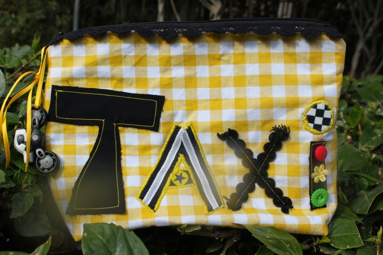 Das ist immer das spannendste, nach einer Landung am Flughafen Kairo (vorausgesetzt man hat den Kofferkrimi gut hinter sich gebracht und das Glück gehabt, dass alles heil am Kofferband angekommen ist *grins*) - das meist stark verdellte, verboxte Gefährt, das ausserhalb des Flughafengebäudes wartet, um die Neuankömmlinge in einer waghalsigen, lebensmüden und dauerhupenden Fahrt an ihr Endziel zu bringen!! Ein Taxi-Täschchen musste her... leider nur im amerikanischen Kleid in gelb, dafür aber mit gesponsertem Anhänger am Reißverschlußzipper vom lieben Sohnemann. :)