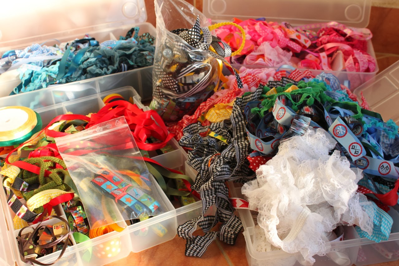 Oh Mann, das sind ja ganz schön viele Bänder!, Ich kaufe mittlerweile 3 Meter, denn sonst ärgere ich mich zu oft, dass es nicht reicht. Ich habe meine Bänder zum Teil auf Pappkarten aufgewickelt und teilweise mit Gummi zusammengehalten an einem Ständer, der eigentlich für Schmuck ist.